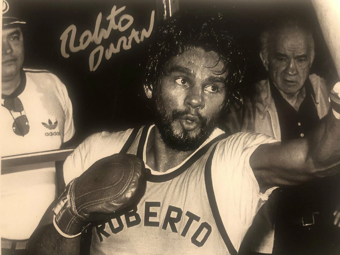 Roberto Duran Autographed Signed boxing 8×10 training photo.