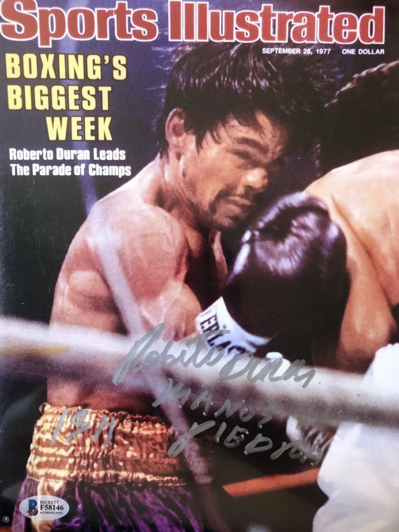 Roberto Duran Hands of stone Inscription Autographed Boxing Photo Signed Beckett Cert.