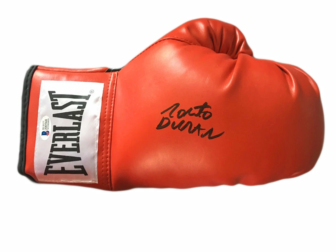 Everlast boxing glove has been hand-signed in black felt-tip pen by Roberto Duran.