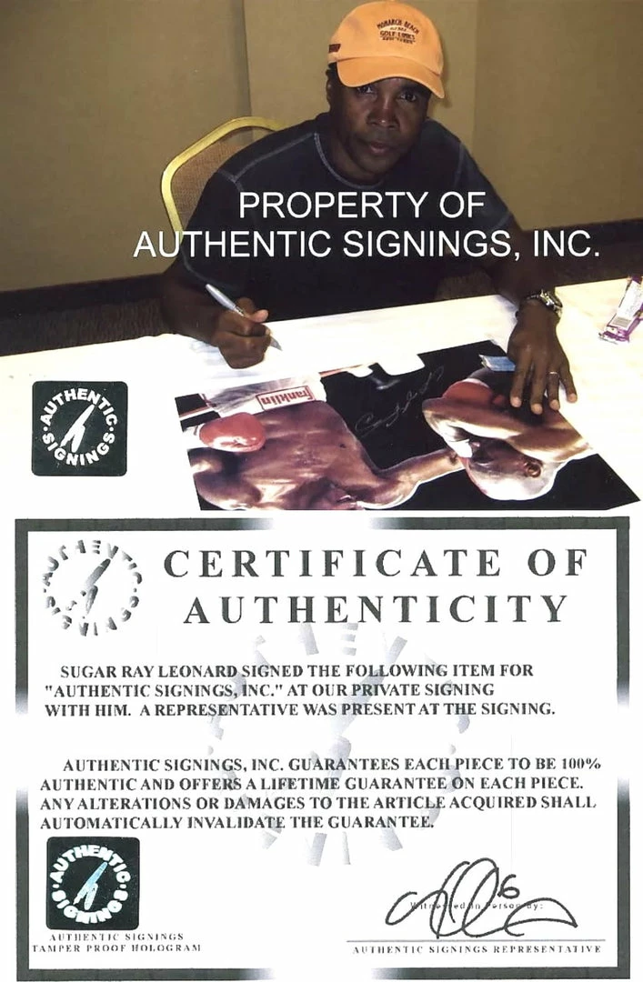 Photo measures 16″ x 20″ in size and has been hand-signed By Sugar Ray Leonard.