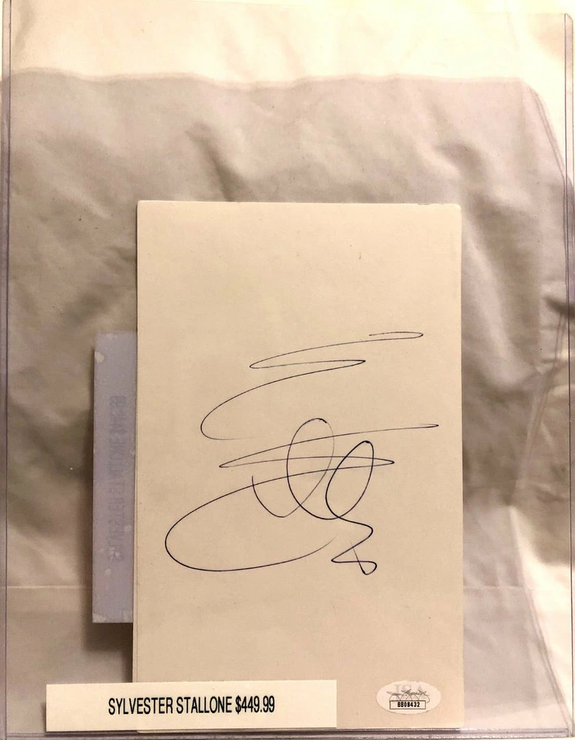 Sylvester Stallone Deluxe Protected Autographed Cut And Hand Written JSA Full letter. This is a very Rare and Vintage Autographed signed signature. A signed Cut is a Great way to own a piece of Rocky Boxing movie History! Looks great anywhere! Even makes a great gift idea.