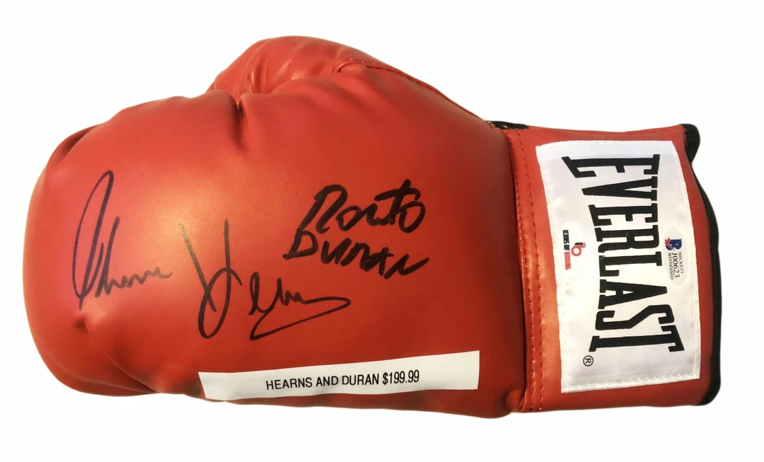 Everlast boxing glove. Hand-signed in black felt-tip pen by Tommy Hearns and Roberto Duran Dual signed.