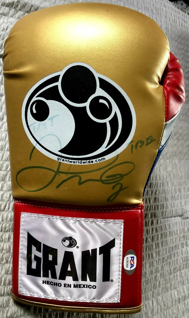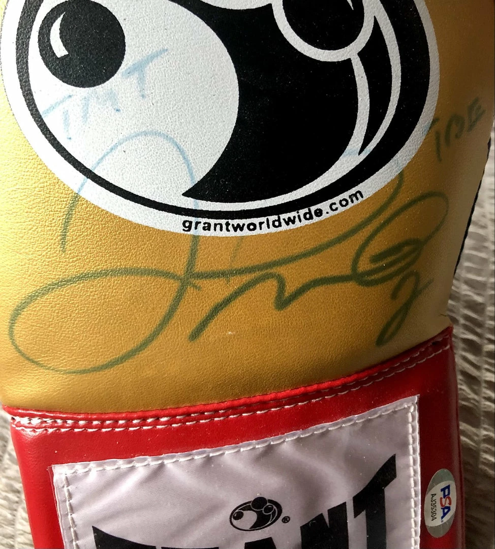 This Rare Gold glove has been personally hand-signed by Floyd Mayweather Jr. Autographs Comes fully certified with PSA/DNA. Certificate of Authenticity and tamper-evident hologram. Also backed by iconsofboxing.com Authenticity Guarantee.