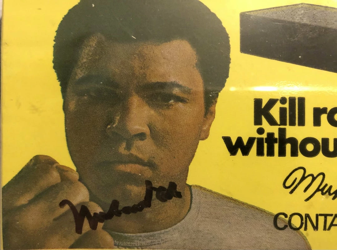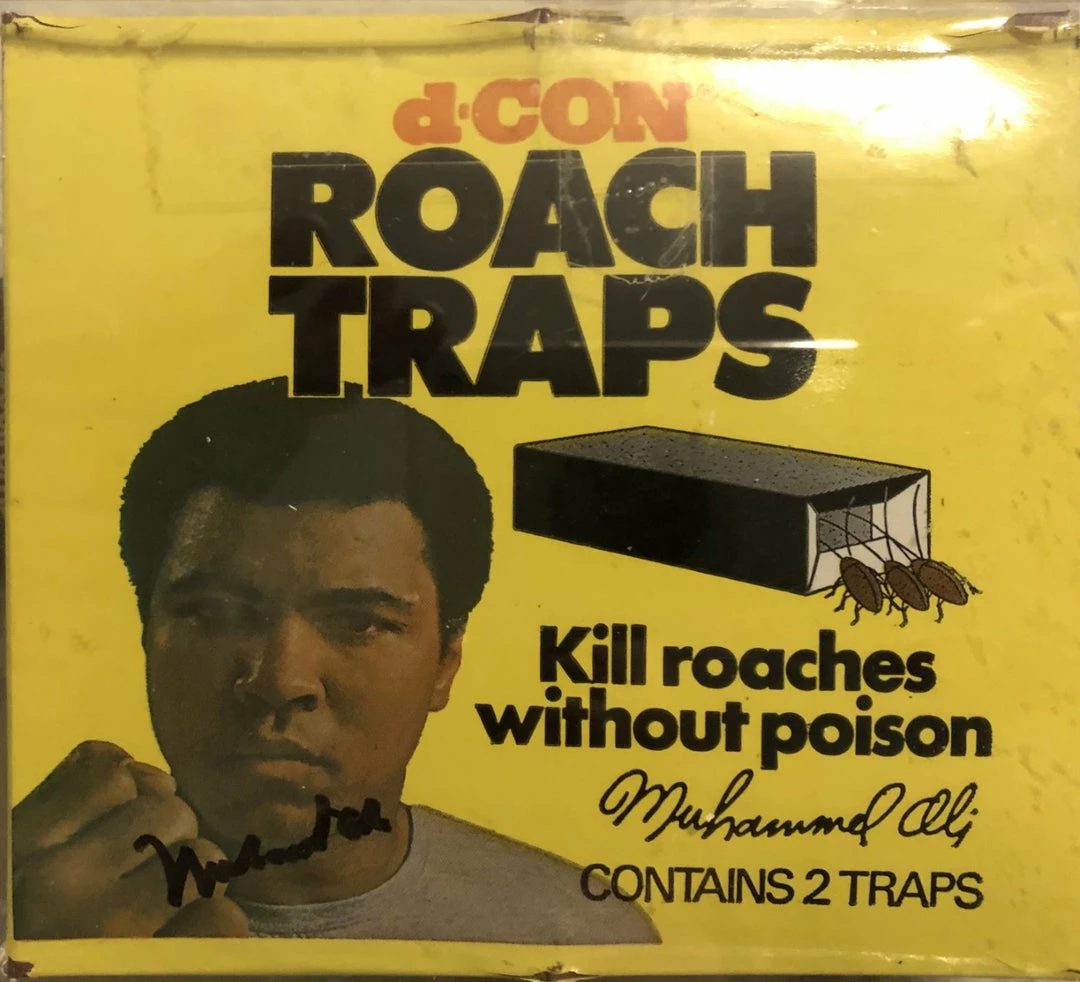 Ultra Rare and a collectors Dream! Muhammad Ali PSA-DNA authenticated and certified D-Con Roach Traps, Autographed signed by Muhammad Ali and 2 traps are secure in an acrylic box. A true Vintage Piece of Boxing History!