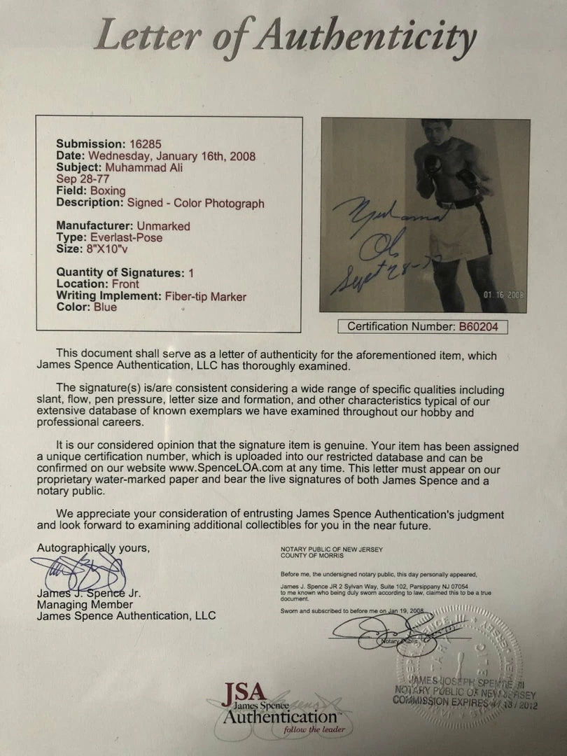 Muhammad Ali Vintage Autographed signed photo with inscription and dated JSA.