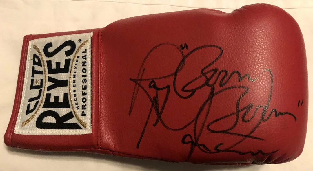 This glove has been personally hand-signed by Ray “Boom Boom” Mancini on a red Reyes Boxing Glove. Signed in Las Vegas, I actually have the picture proof of Ray Mancini signing this actual glove! Autographs Comes fully certified and tamper-evident hologram. Also backed by iconsofboxing.com Authenticity Guarantee.