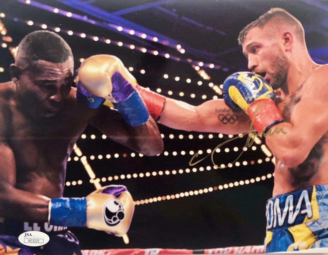 This Vasyl Lomachenko Hand Signed in Gold marker a 8×10 size action fighting Boxing photo has been personally Autographedby In Person. Signed In A Bold Gold Marker. Signatures may vary slightly if we have more than one of the same.