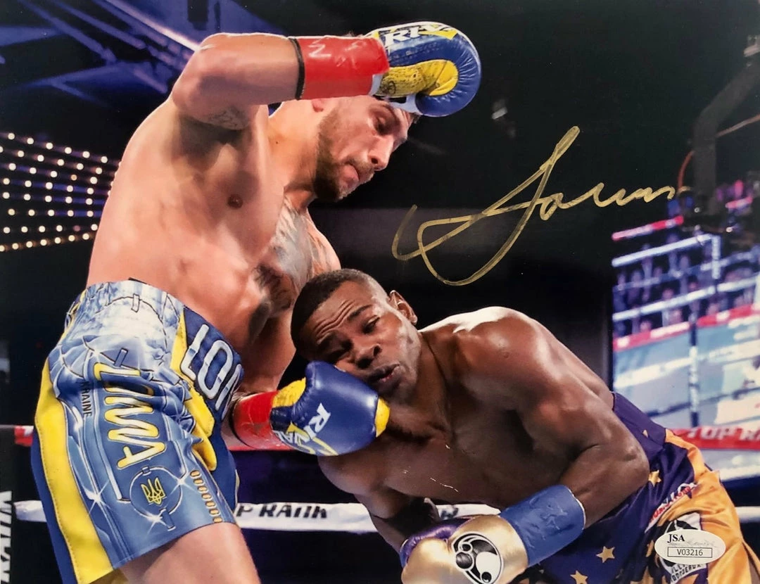 This Vasyl Lomachenko Hand Signed in Gold marker a 8×10 size Boxing photo has been personally Autographedby In Person. Signed In A Bold Gold Marker. Signatures may vary slightly if we have more than one of the same.