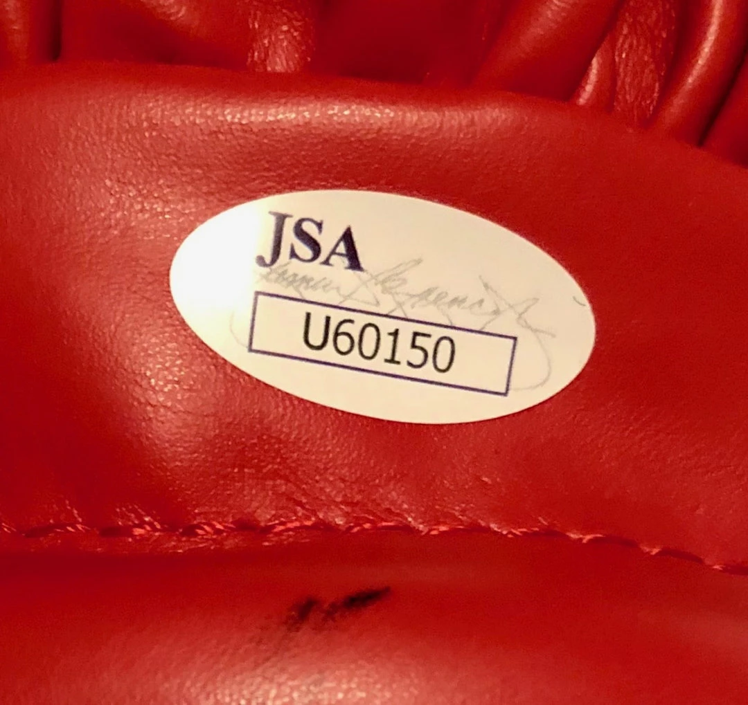These Red Color Everlast Vasyl Lomachenko Hand Signed signature Boxing Gloves has been personally Autographedby In Person. Signed In A Bold Black Marker. Signatures may vary slightly if we have more than one of the same. Autographs Comes fully certified and tamper-evident JSA hologram. Also backed by iconsofboxing.com Authenticity Guarantee.