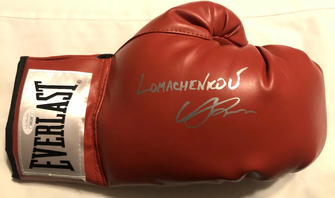 Iconsofboxing.com Vasyl Lomachenko Autographed Everlast Red Boxing Glove In Silver Signature JSA