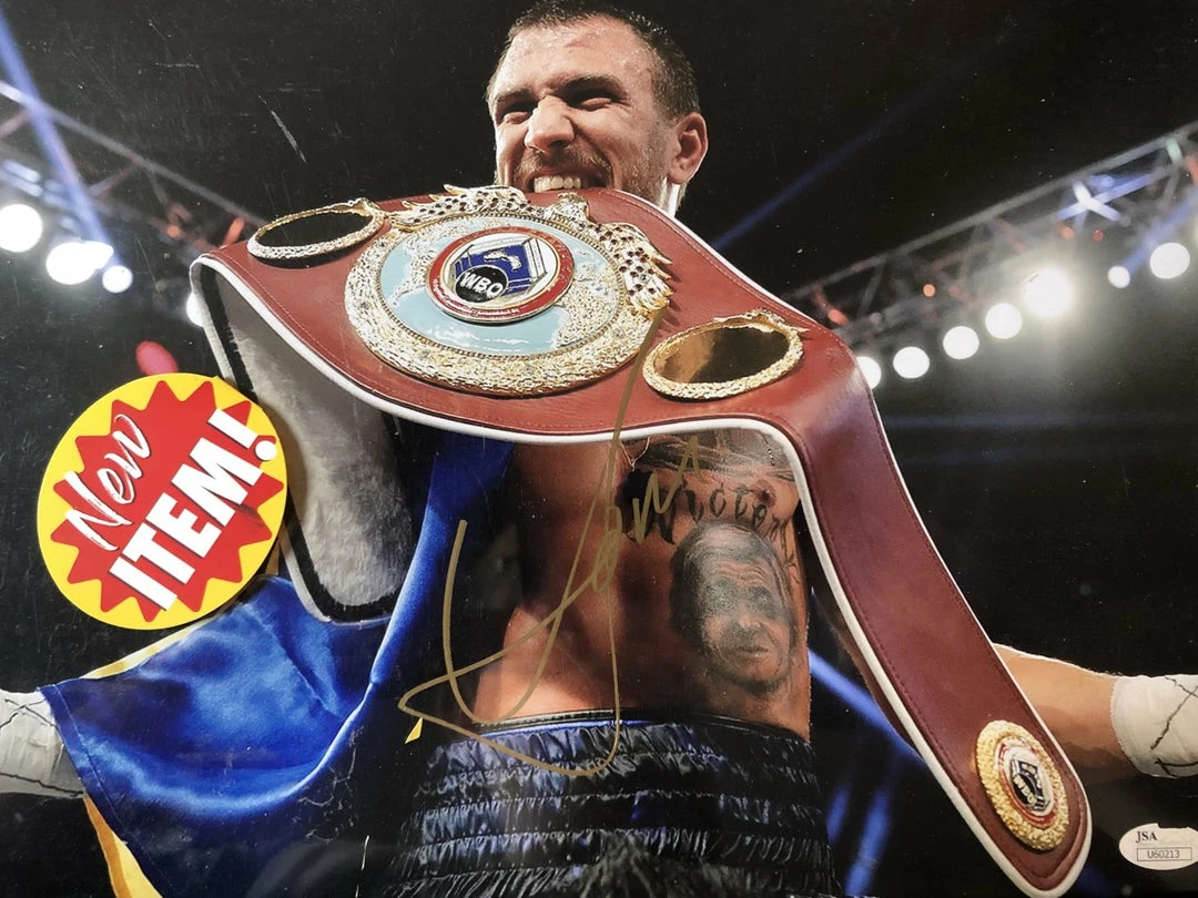 This Vasyl Lomachenko Hand Signed in Gold marker a 11×14 size Boxing photo has been personally Autographed by In Person. Signed In A Bold Gold Marker. Signatures may vary slightly if we have more than one of the same.