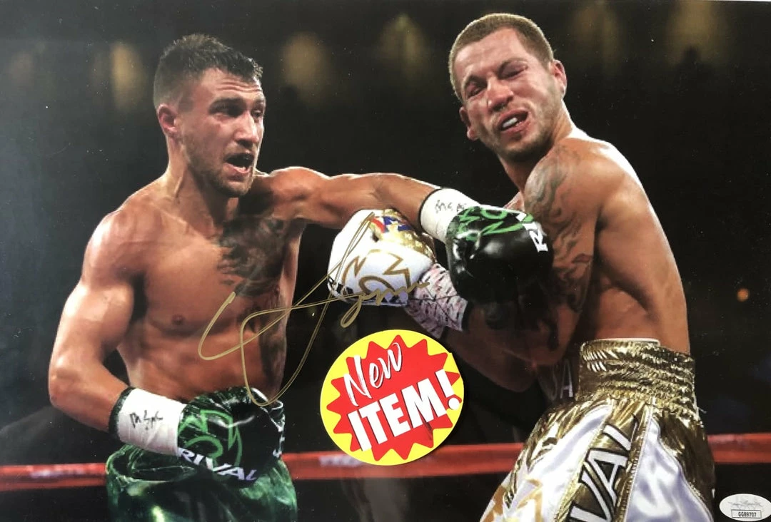This Vasyl Lomachenko Hand Signed in Gold marker a 11×14 size Boxing photo has been personally Autographed by In Person. Signed In A Bold Gold Marker. Signatures may vary slightly if we have more than one of the same.